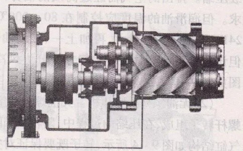 我不知道你們發(fā)現(xiàn)沒?此類型空壓機的氣缸里面有兩個按一定傳動比反向旋轉又互相嚙合的螺旋形轉子互相并列。按照圖片來看,節(jié)圓外具有凸齒的轉子稱為陽轉子;節(jié)圓內具有凹齒的轉子稱為陰轉子。